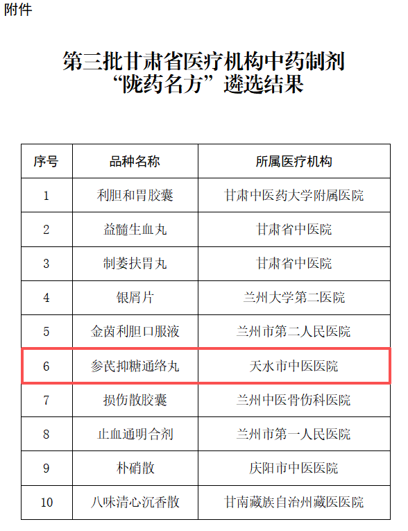 天水市中医医院院内制剂“参芪抑糖通络丸”入选第三批甘肃省医疗机构中药制剂“陇药名方”
